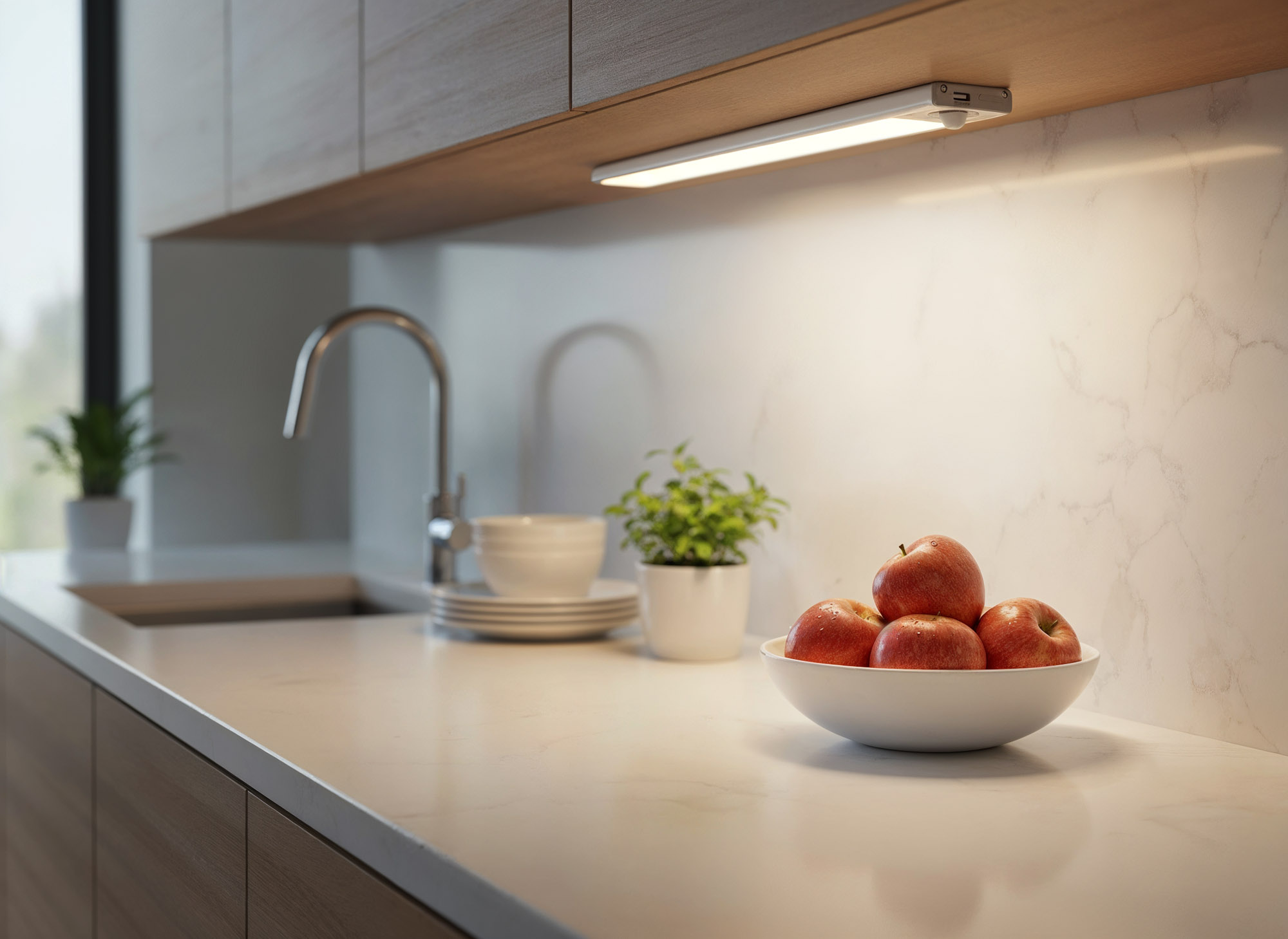 Questi innovativi sottopensili LED CCT sono disponibili in due modelli: versione rettilinea, in due lunghezze (300×39 o 600×39 mm) per spazi più compatti, oppure versione quadrata (200×200 mm) per superfici più ampie. L’installazione è semplice e versatile grazie al fissaggio magnetico diretto o alla piastra adesiva inclusa.