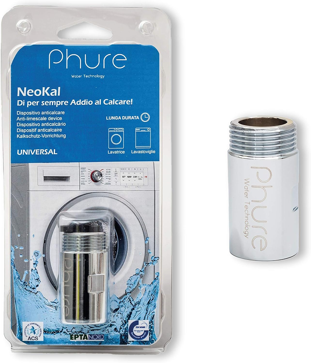 Neokal Dispositivo Anticalcare Antibatterico Universale per lavatrice e Lavastoviglie, Universale 3/4", per sempre addio al calcare, aiuta a prevenire la formazione di calcare, a ridurre l'uso di detersivi e ammorbidenti chimici.