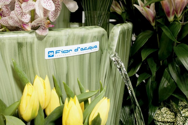 Il sistema funziona per effetto di due efficacissimi principi: il freddo e il ricircolo continuo dell’acqua. Un frigorifero di moderna tecnologia mantiene l’acqua fredda a 6° C: solo a questa temperatura la carica batterica dell’acqua rimane sotto controllo, grazie anche a un efficace sistema di sterilizzazione a raggi UVC. Il secondo principio è il ricircolo continuo dell’acqua, perchè l’acqua stessa, raffreddata e filtrata, circola tramite una piacevole cascata esterna con cui si ossigena continuamente, nutrendo i fiori con acqua fresca e pulita. É sufficiente una presa di corrente per far funzionare il sistema, che non necessita di allacciamento idrico e si scarica facilmente con una pompa accessoria. Grazie a Fior d’Acqua si riduce il tempo e il lavoro dedicato dal fiorista alla manutenzione dei fiori e si ottimizza lo spazio espositivo riservato ai fiori stessi, creando una vetrina di grande impatto visivo, con una scelta di prodotti più ampia e articolata. Ma i vantaggi di Fior d’Acqua non finiscono qui: oltre a prolungare la vita dei fiori recisi, il sistema consente di risparmiare acqua (ne bastano 250 litri al mese), di sostituire gli scomodi vasi tradizionali e di limitare fortemente l’uso di celle frigorifere.