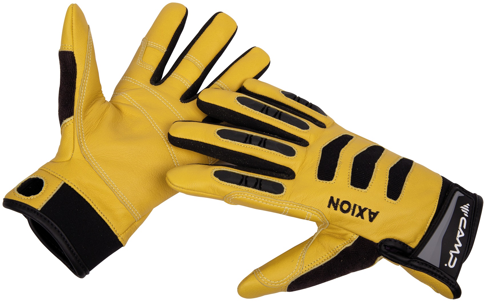 Il guanto Axion (cod. 1879) di C.A.M.P. è indicato per lavori su corda, in pelle di prima qualità. Massima resistenza all’usura grazie al doppio strato sul palmo con cuciture in aramide.