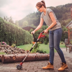 L’impugnatura telescopica regolabile e il sistema Softgrip rendono il lavoro comodo e naturale, mentre la ruota di guida garantisce precisione anche nei passaggi più stretti.