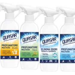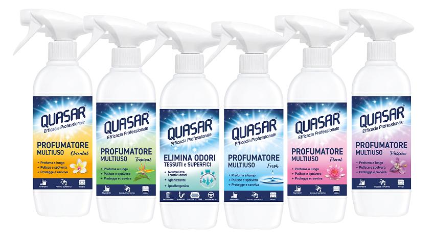 Dall’esperienza professionale di Quasarnasce un’innovativa linea di prodotti composta da cinque Profumatori Multiuso, ideali per profumare e detergere le superfici di casa, disponibili nelle fragranze Fresh, Tropical, Floral, Passion e Oriental.