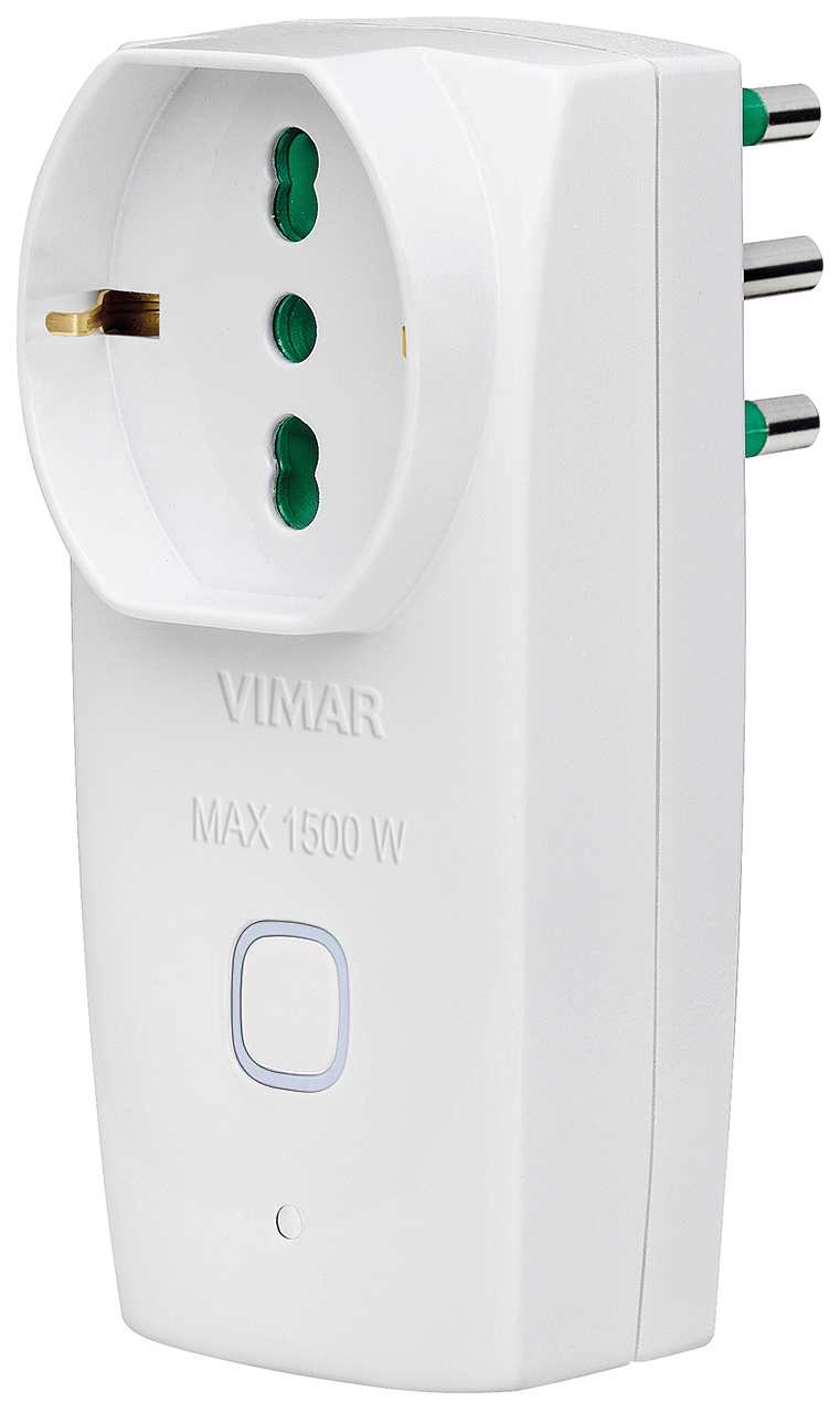 Vimar propone l’adattatore connesso Wi-Fi con spina grande da 16A, presa universale e interruttore luminoso ON/OFF, controllabile con app View Product dell’azienda per accendere/spegnere/temporizzare i dispositivi collegati, controllare i consumi, creare scenari combinando più azioni e ricevere notifiche se il dispositivo è offline.