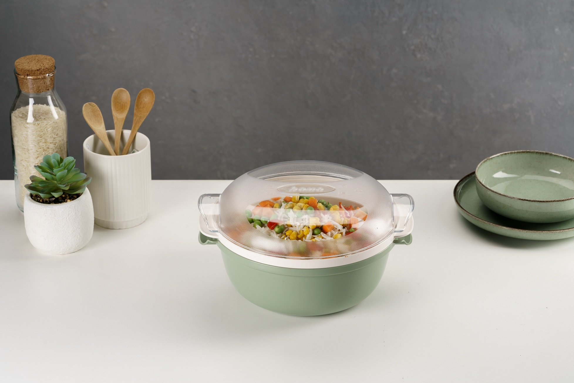 Cooky, è la vaporiera indicata per cucinare, scongelare e riscaldare direttamente nel microonde in modo facile, veloce e senza grassi, mantenendo inalterate le vitamine e sali minerali grazie alla cottura a vapore. Ideale anche per conservare gli alimenti sia in frigorifero, sia nel freezer. La vaporiera è ideale per chi ama una cucina sana, povera di grassi e senza condimenti aggiunti: con un po' di acqua sul fondo del contenitore principale puoi ottenere rapidamente la cottura delle tue pietanze nel microonde.