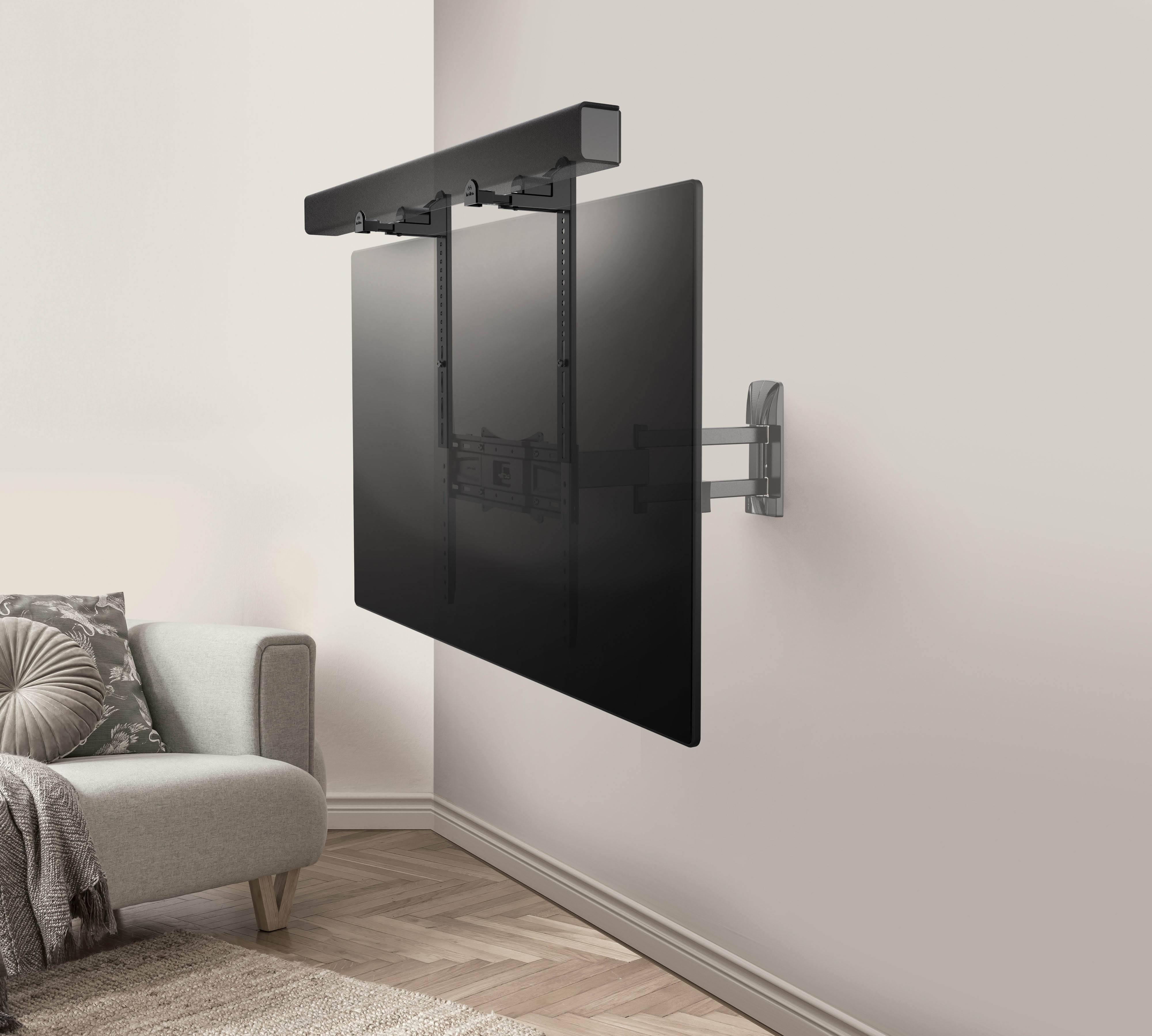 Il supporto da TV dedicato per fissare la soundbar sotto o sopra la televisione utilizzando la foratura VESA è una proposta Meliconi. Permette di liberare spazio, rendendo tutto più pulito e ordinato, nel pieno rispetto del design contemporaneo.