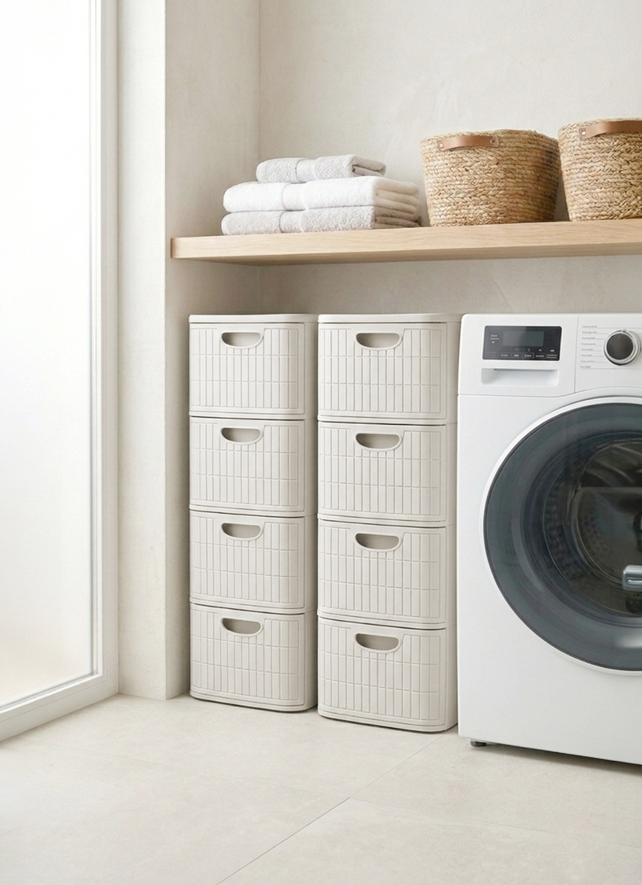 Dalle cassettiere, ora disponibili anche nelle nuove versioni slim a 3 e 4 cassetti ideali per ottimizzare gli spazi, alle soluzioni dedicate al bucato, come il portabiancheria da 36 litri e le ceste capienti e funzionali (con e senza manici): la collezione si arricchisce mantenendo coerenza stilistica e forte riconoscibilità.