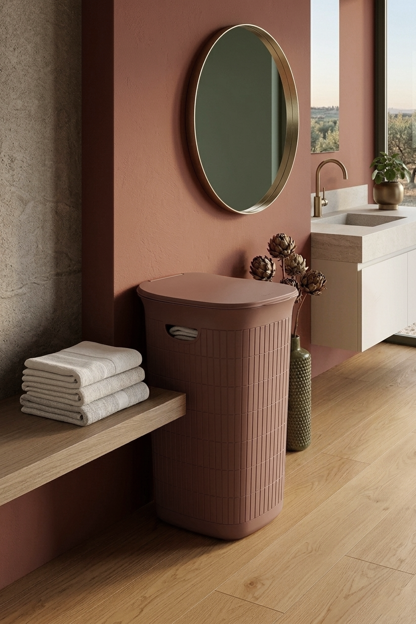 Tutti i prodotti sono realizzati in plastica riciclata e declinati nella raffinata palette della linea: Dust White, Greige, Green Tea, Smoky Blue e Mocha Mousse.