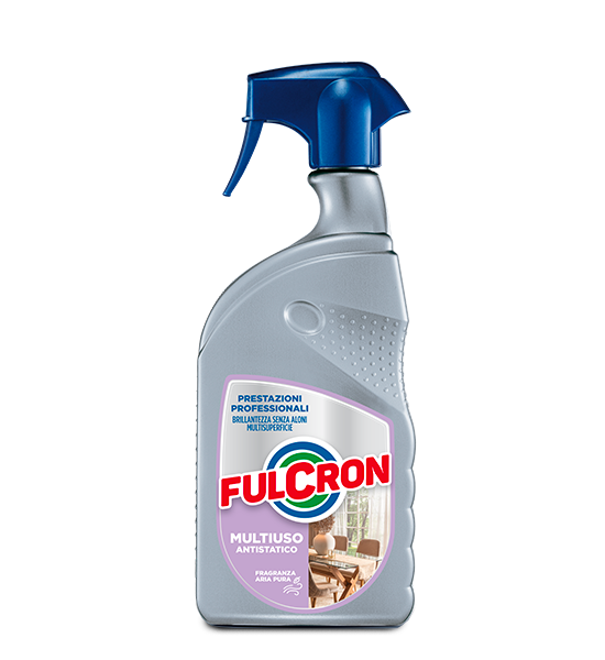 Il nuovo Fulcron Multiuso Antistatico è studiato proprio per semplificare la pulizia quotidiana: in una sola passata elimina polvere, aloni, macchie e impronte digitali da tutte le superfici dure lavabili, dai mobili laccati ai vetri, dal plexiglass agli schermi TV.