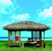 Caraibi, proposta da Il Ceppo, è una struttura impermeabilizzata con Palmex, la palma sintetica realizzata con polimeri imputrescenti che non scolora, non annida insetti e garantisce una perfetta impermeabilizzazione.
