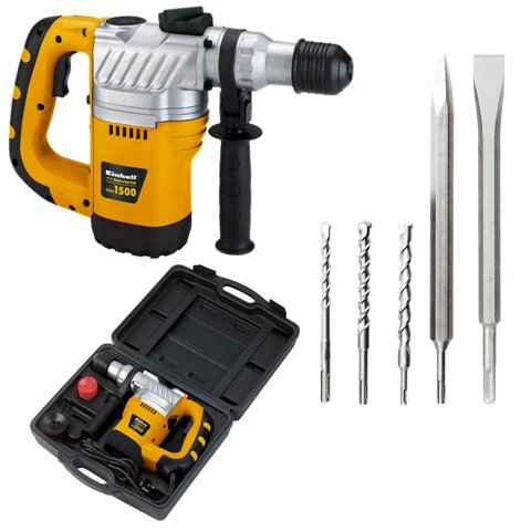 Molte le proposte Einhell Italia, a partire dal tassellatore elettrico BBH 1500 Bavaria, disponibile in pratica valigetta, dotato di attacco SDS-Plus, impugnatura supplementare e tappo antipolvere. Le sue caratteristiche tecniche sono: tensione d’alimentazione 230 V/50 Hz, potenza 1400 W, velocità 800 giri/min, percussione 4100 colpi/min, forza colpo 4 Joule, capacità foratura 32 mm max per cemento/pietra, peso 8,4 kg.