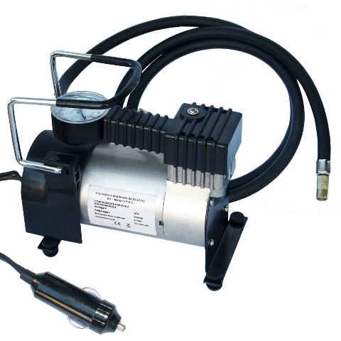 Dalle dimensioni contenute (ingombro: cm 16x14x8), è completo di spinotto accendisigari per auto; altri accessori inclusi nella confezione sono: manometro, cavo elettrico della lunghezza 3 metri, tubo di gomma da 1,5 metri con attacco filettato, 3 adattatori per valvola.