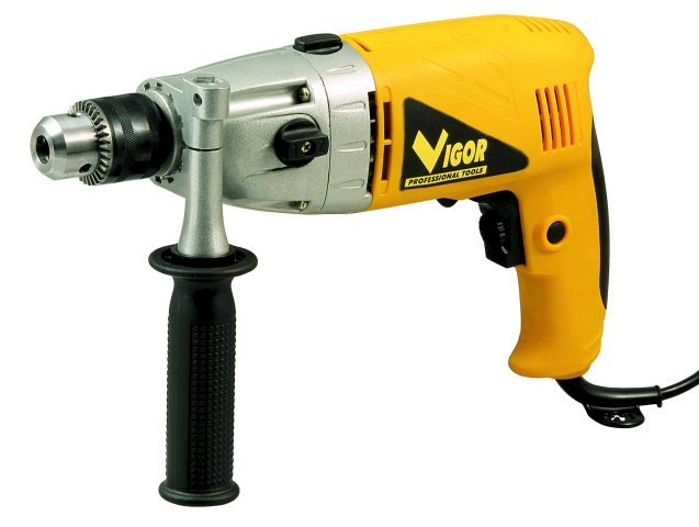Il trapano VBM 1100-2 a marchio Vigor ha una potenza di 1.050 W. Elettronico e a battente, è disponibile con due velocità.