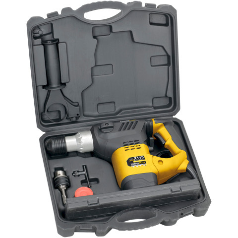 Il martello/demolitore Powx 115 ha una potenza di 1500 W e tre funzioni: trapano, trapano con percussisone e scalpellatore. Le sue dotazioni e caratteristiche tecniche sono: manico con sistema antivibrazione, cavo elettrico da 3 m, adattatore/mandrino. Nella valigetta di plastica sono compresi i seguenti accessori: tre punte SDS da 8, 10, 12 mm; uno scalpello da 250 mm; uno scalpello a punta piatta da 250 mm.