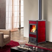 Venere è una stufa a legna di grandi dimensioni. Il focolare e la componentistica in ghisa, ne fanno un oggetto di grande qualità. Richiusura di sicurezza del portello fuoco. Colori ceramica: bordeaux e panna.