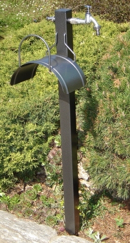 Realizzato in acciaio verniciato può essere installato a terra con un puntale o con un supporto a richiesta.