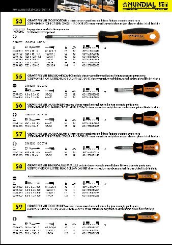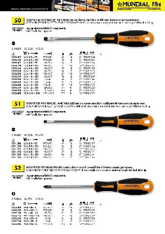 Mundial Gommogrip è un giravite professionale con morbida impugnatura ergonomica bicomponente, con profilo triangolare per la trasmissione dello sforzo e a sezione cilindrica per la rotazione rapida. Tutte le lame della gamma Mundial Gommogrip sono prodotte con uno speciale acciaio legato per utensili chromo-vanadium-molibdeno, che permette di raggiungere 60 HRC gradi di durezza, migliorandone al tempo stesso la durata.