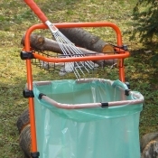 il carrello portasacco con cestino è un carrello ottimo per raccogliere foglie, ramaglie, scarti dell'orto grazie al capiente sacco; è dotato di robuste ruote per poterlo spostare in qualsiasi punto sia necessario. La particolarità che lo rende unico è il cestino posto nella parte superiore, che può essere usato per appoggiare guanti o piccoli attrezzi.