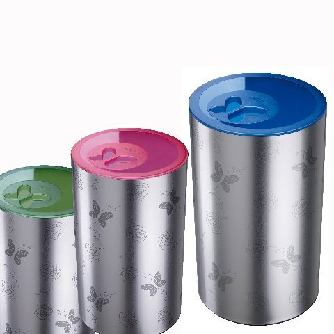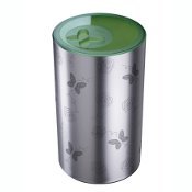 Racchiude eleganza e design in un volume importante, ma utile e pratico per nascondere e stoccare i panni in attesa della lavatrice. Il nuovo portabiancheria Meliconi si presenta in duplice veste: in acciaio inox lucido, pensato per ambienti bagno in cui il cromo prevale, oppure in metallo satinato opaco con litografie di farfalle e fiori tono su tono, che riprendono il disegno dell’impugnatura del coperchio.