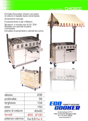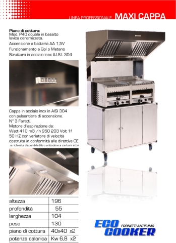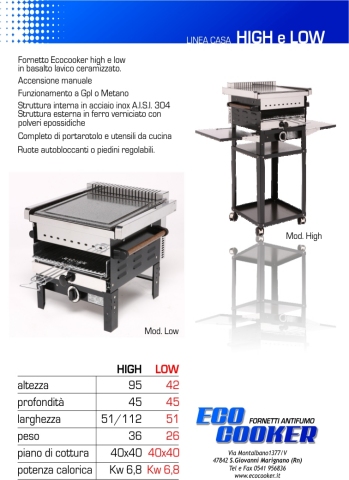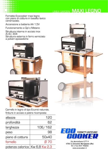 Eco Cooker è l”unico barbecue con cui si possono eseguire due cotture contemporaneamente, una sulla parte superiore cioè sulla pietra vulcanica e laltra nella parte inferiore, sulla griglia. Il fornetto ECO COOKER, grazie alla sua costante temperatura data dalla pietra vulcanica, è un piccolo elettrodomestico di grande versatilità e permette molteplici prestazioni a basso consumo e un'ottima cottura biologica.
