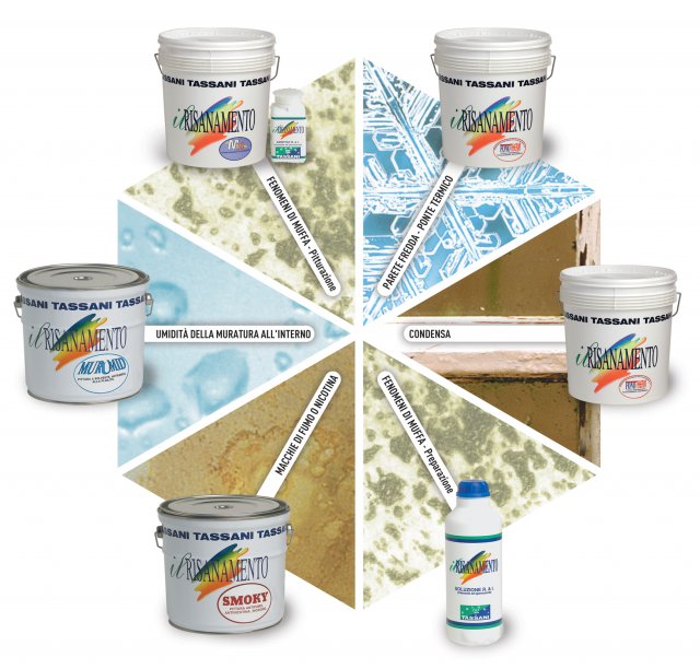 La linea Il Risanamento è un programma completo di prodotti per risanare gli ambienti interni degli edifici da problemi come igiene, umidità, macchie di fumo e muffa. Contro l’ingiallimento delle pareti dovuto a fumo e nicotina c’è Smoky. Fonotherm è, invece, la pittura lavabile che contribuisce a risolvere il problema dell’inquinamento acustico. Contro le macchie di umidità troviamo Murumid, che lascia traspirare il muro mantenendolo sano e integro. Tre, infine, i prodotti contro il fenomeno della muffa: la soluzione risanante e igienizzante - M16, pittura traspirante e idrorepellente che assicura condizioni igieniche ideali prevenendo il fenomeno di degrado - l’additivo risanante e igienizzante.