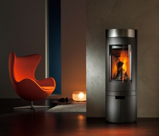 Il modello Zio, disegnata da Akantus Design, è una stufa rotonda di diametro 45cm. In alto ha incorporato un vaporizzatore d'acqua che crea una piacevole climatizzazione con la giusta dose d'umidità nell'aria. La nuova tecnica di combustione brevettata di Skantherm garantisce una combustione efficace e pulita. Dimensioni: H130,5 x L46 x P46 cm. Importata da Oekotherm.