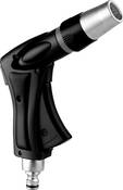 La pistola per irrigazione Deluxe, di Gf, dotata di regolazione del getto da forte e teso fino a ventaglio delicato, è costruita con tre diversi materiali: ABS antiurto, gomma termoplastica per la migliore maneggevolezza e comfort, metallo nell’attacco raccordo e punta per la massima robustezza e precisione nella regolazione del getto. La portata dell’acqua è regolabile a mezzo della leva anteriore e bloccabile in tutte le posizioni mentre la portata massima è di 20 litri/minuto a 3 bar.