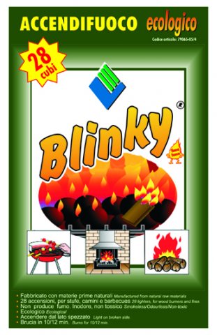 Diverse soluzioni per l’accensione di stufe, camini e barbecues, sono offerte da Viglietta Group con l’accendifuoco a marchio Blinky. Il prodotto è disponibile in diverse versioni: da 40 cubetti e formato maxi da 80; istantaneo da 20 barrette con innesco senza fiammiferi; in paglietta ecologica (paglia e cera) da 24 pezzi; ecologico in 28 cubetti; Lite in 48 cubi; liquido e barbecue-gel in confezioni da 1 litro.