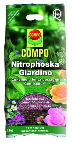 Nitrophoska Giardino è il prodotto ottimale per colture del giardino, tappeti erbosi, aiuole, arbusti, piante ad alto fusto, colture ortive e da frutto. La particolare formulazione e la presenza di Isodur (azoto ad azione prolungata) garantiscono sicurezza nell’impiego e nei risultati. Nitrophoska Giardino è realizzato in sacchi da 4 kg e 8 kg.