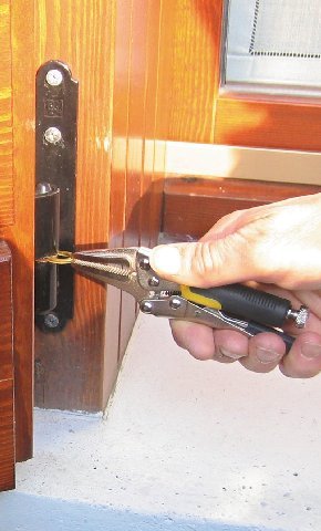 Sollevare, inserire e, senza smontare l’infisso, la rondella alzaporta Klik di Minutex viene infilata sul perno del cardine. Realizzata in ottone che le conferisce elasticità, finitura lucido e spessore di 2 mm, Klik viene inserita a scatto grazie alla particolare sagoma con apertura conica. L’operazione è semplice: si solleva l’infisso di quanto serve facendo leva dal sotto e si inserisce la rondella.