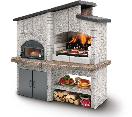Cipro di Palazzetti è l'elegante barbecue da giardino realizzato in marmotech (una speciale graniglia di marmo policroma) con finitura a mattoncino. I piani particolarmente resistenti agli agenti atmosferici e a qualsiasi utilizzo, sono lavorati effetto spazzolato tinta grigia. Il forno in refrattario ha portina in ghisa con vetro ceramico e termometro. In dotazione la griglia cottura standard da cm 68, il funzionale portalegna e griglia con cassetto per la raccolta cenere.