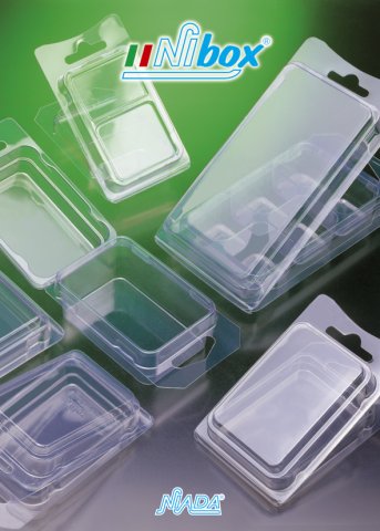 Nibox è la serie di valigette più diffusa e richiesta nel settore ferramenta: realizzate in pvc trasparente (pet a richiesta), sono dotate di un sistema di chiusura a scatto che permette di rendere il confezionamento manuale veloce e pratico. Recentemente è stata introdotta una nuova famiglia di bivalve con maggiore superficie, così da poter inserire un sottile foglietto sul retro del blister.