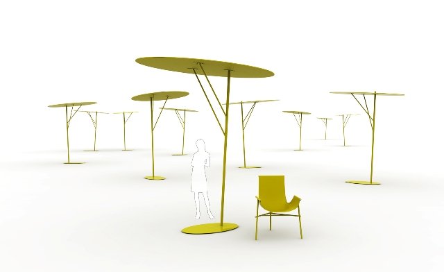 Branch, disegnata da Ilaria Marelli, è un concept interessante: gli elementi realizzati tendono a mascherare l’intrusione umana nel mondo della natura, le strutture hanno sembianze di tronchi e rami, su cui si sviluppano le sedute, i tavoli ed i parasoli, esprimendo leggerezza ed estensibilità per armonizzarsi con l’ambiente.