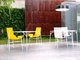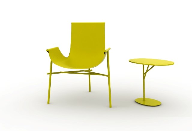 La struttura è in acciaio, trattato antiruggine e verniciato con resina epossidica per esterno, mentre le sedute sono in tessuto tecnico per esterno.