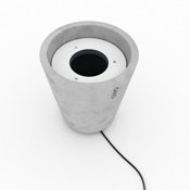 Realizzata in cemento (38x42 cm) è disponibile anche nella versione 'vaso', cioè senza luce e adatta per ospitare piante e fiori.