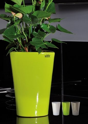 Fra le novità proposte nella Collezione 2010 del nuovo catalogo VASAR italian garden design by Telcom, una nuova interpretazione di forme e colori per la linea Terracotta che propone, quest'anno, forme sinuose e colori naturali ispirati alla natura. Nella foto il vaso Lofelia con bocca a 'delta' e base circolare; è disponibile nei colori 'fango', 'verde acido' e 'bianco'.