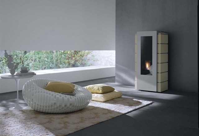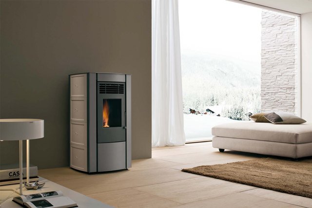 Giulia, grazie al focolare e allo scambiatore di nuova concezione, cede la quasi totalità dell’energia all’acqua (kW 15,2), che può essere utilizzata per riscaldare i radiatori e per uso sanitario. Le sue dotazioni esclusive la rendono ideale per chi desidera riscaldare la propria casa affidandosi ad una tecnologia completamente automatica che garantisce la massima praticità e alti rendimenti (~ 93,5%). Oltre a garantire eccellenti prestazioni, Giulia può essere inserita nella zona living come un vero pezzo di arredamento: il suo design raffinato è impreziosito dalle finiture dei fianchi in essenza di legno wengè, teak o laccati giallo, nero o bianco.