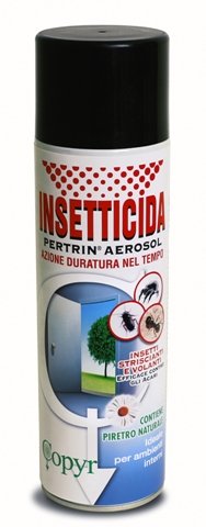 Pertrin Aerosol contiene due diversi insetticidi: il Piretro naturale ad azione immediata e la Permetrina, dal prolungato potere disinfestante, che uniscono alla elevata efficacia la massima sicurezza d’impiego.