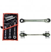 Dami Ferruccio propone un assortimento di 3 chiavi a cricchetto reversibile 4 in 1 in acciaio cromo vanadio con corona a 72 denti, leva di reversibilità destra-sinistra. L’articolo è composto da: 1 chiave composta da 8x9 - 10x11 mm; una da 12x13 - 14x15 mm; una da 16x17 - 18x19 mm. A questo si aggiunge una pratica trousse in nylon.