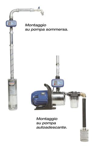 Assente l’acqua, Flusstronic blocca la pompa e ogni 20 minuti tenterà di avviarla per 10/20 secondi fino a quando l’acqua sarà presente. Il range di portata minima d’acqua riconosciuto dal sistema prima di riavviare la pompa è tra 0,8 e 1,3 litri/min.