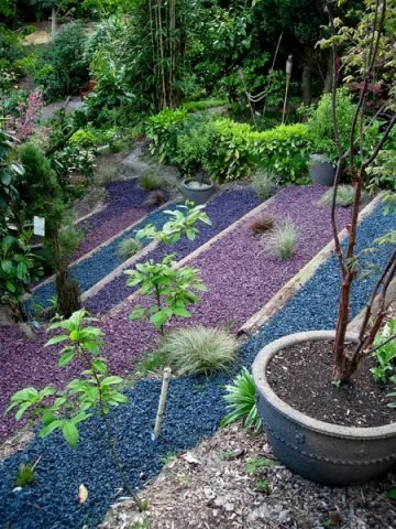 L’idea di avere pneumatici sminuzzati nelle aree verdi può essere non particolarmente allettante ma i risultati mostrano il contrario. Dunweedin, prodotto dall’omonima azienda di Middlewich in Inghilterra, è esteticamente piacevole e disponibile in vari colori, verde compreso, ottenuti con coloranti a base acquosa, i quali permettono di creare un interessante contrasto con il materiale vegetale ed eventuali altre superfici presenti nel progetto. È un materiale inerte che non assorbe acqua (quindi tutta l’umidità resta a disposizione delle piante), asciuga in fretta, non attira animali e insetti ed è utile per limitare la crescita delle infestanti.