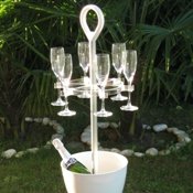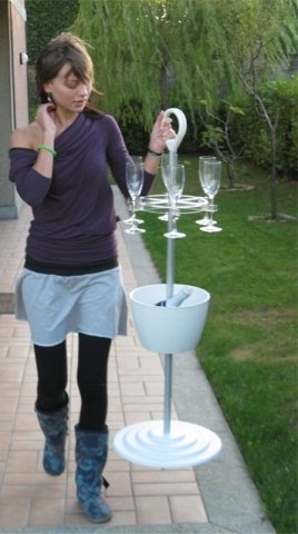 Easy Stand è dotato di frappeuse e 6 reggicalici con segnaposto integrato per consentire un riconoscimento immediato del proprio bicchiere in ogni momento. Inoltre, grazie alla maniglia e all'esclusivo sistema di ancoraggio dei flute alla struttura, Easy Stand può essere spostato in piena sicurezza, anche durante l'uso con i calici colmi.