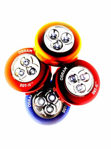 Il successo di DOT-it è noto. Oggi però il piccolo apparecchio per illuminare offre qualcosa in più. Nella versione DIM, infatti, si perfeziona poiché è regolabile dato che i tre led si possono accendere uno alla volta. Altra novità è che le batterie possono essere sostituite senza staccare la sorgente luminosa di DOT-it, grazie alla pratica chiusura turn-lock. Le sue dimensioni sono diametro 67mm, altezza 22mm, peso 65g.