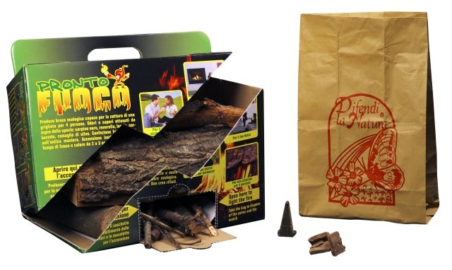 Pronto Fuoco viene confezionato a mano e offre con estrema semplicità l'opportunità di accendere il fuoco in maniera rapida e naturale anche in situazioni più difficili, in cui non è possibile immagazzinare e trasportare legna.