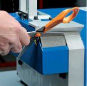 Per le forbici la mole è cilindrica, grazie a un riferimento si può procedere all’affilatura appoggiando la parte inferiore della lama e facendola scorrere.