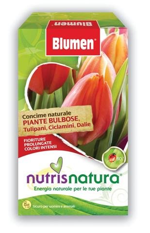 Per questo Blumen ha creato Nutrisnatura per piante bulbose, un fertilizzante naturale formulato e realizzato nel pieno rispetto dell’ambiente che va utilizzato al momento dell’interramento del bulbo e durante tutto il periodo di fioritura della pianta. L’elevato contenuto di potassio e zolfo favorisce una splendida fioritura per tutta la stagione.