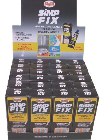 Ideato per le applicazioni più difficili, Simp-Fix è il prodotto che meglio sintetizza l’innovazione raggiunta dai laboratori Pigal. Formulato con una innovativa famiglia di polimeri in grado di conferire notevoli prestazioni su una vastissima gamma di superfici e/o materiali, il sigillante adesivo Simp-Fix aderisce addirittura su superfici bagnate, garantendo la massima tenuta ed efficacia anche in immersione. Esente da isocianati, da solventi, da ftalati e da alogenoderivati, è un prodotto verniciabile.