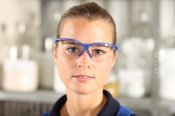 In foto, il modello Dräger X-pect 8340 contraddistinto dalla montatura blu e un design sportivo e avvolgente. Per un maggior comfort, si possono regolare l’angolazione e la lunghezza delle stanghette cui si aggiunge un ponte nasale molto morbido.