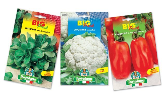 L'Ortolano, azienda da sempre orientata alla qualità del prodotto, presenta la nuova immagine grafica della linea Big Pack, marchio che contraddistingue le buste di sementi orticole per il mercato hobbistico di fascia medio/alta.