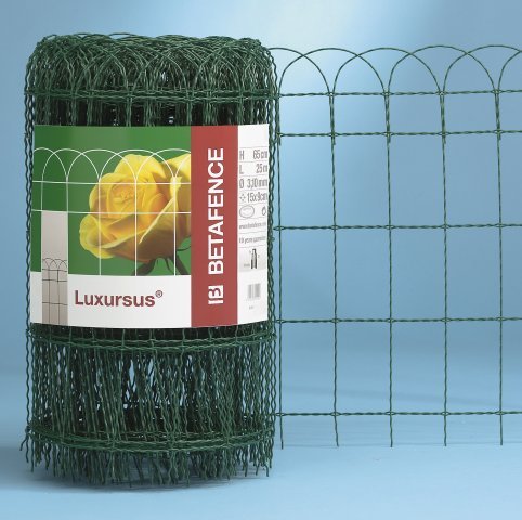 Proposta da Betafence, Luxursus è una rete ornamentale in fili d’acciaio zincato e plasticato, contraddistinta da un design sobrio ed elegante e dal raffinato motivo decorativo ad arco sulla sommità. Formata da fili orizzontali intrecciati (di diametro esterno pari a 2,40 mm) e verticali ondulati (di diametro esterno pari a 3 mm), Luxursus è in grado di rimanere inalterata nel tempo, grazie alla speciale zincatura e rivestimento in PVC. Disponibile in rotoli da 25 metri e nel colore verde muschio, è presente in altezze variabili da 40 a 120 cm ed è dotata dei seguenti specifici accessori per il fissaggio: pali tondi, paletti Multistick, collari di tensione, filo di legatura, bacchette di fissaggio.
