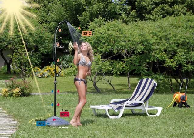 Una doccia adatta a ogni ambiente esterno che, sfruttando in modo naturale l' energia solare, è in grado di produrre acqua calda gratis.